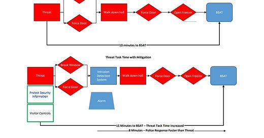 For biological research into pathogens, the threat of human malfeasance is well-documented, generally considered beyond dispute, and one of the primary justifications for the existence of the DTRA. For lab biosecurity, the facilities are not only designed to provide physical safeguards against the pathogens escaping to the local outside environment — the facilities are also designed with security features and personnel who help control access to and track the usage of the research materials.